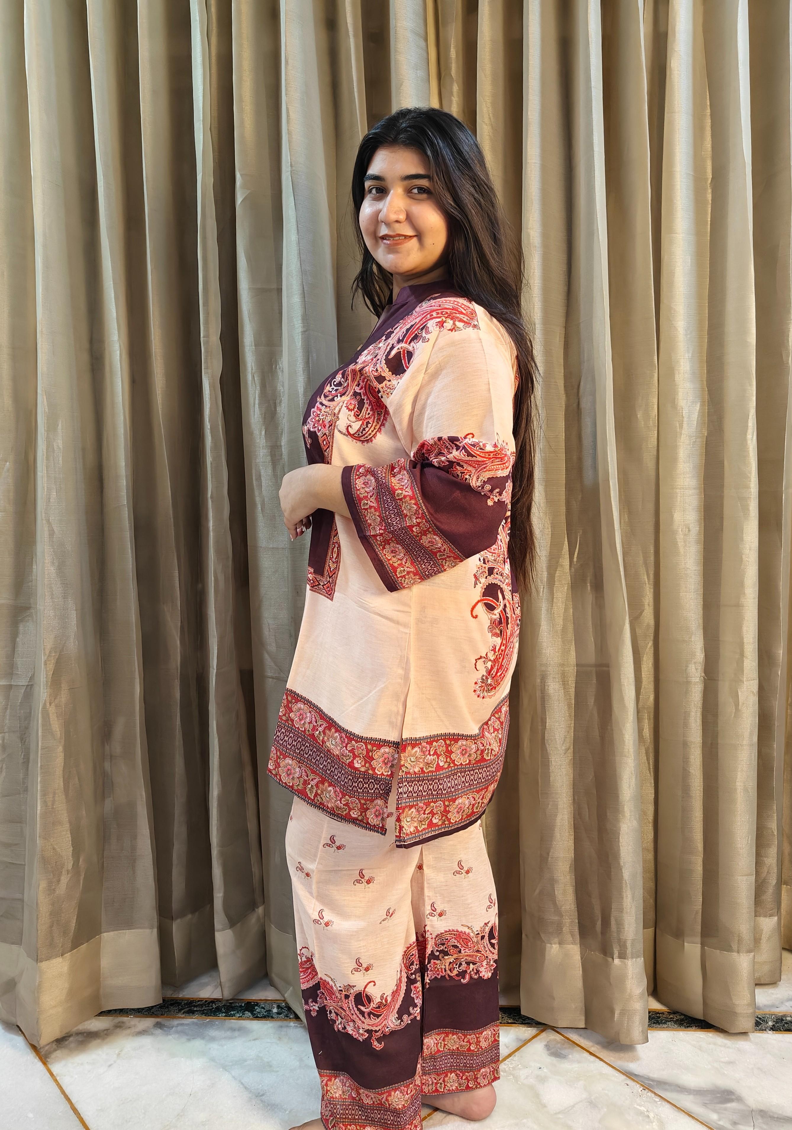 Size and Fit: Loose straight fit Kurti with Wide leg pants