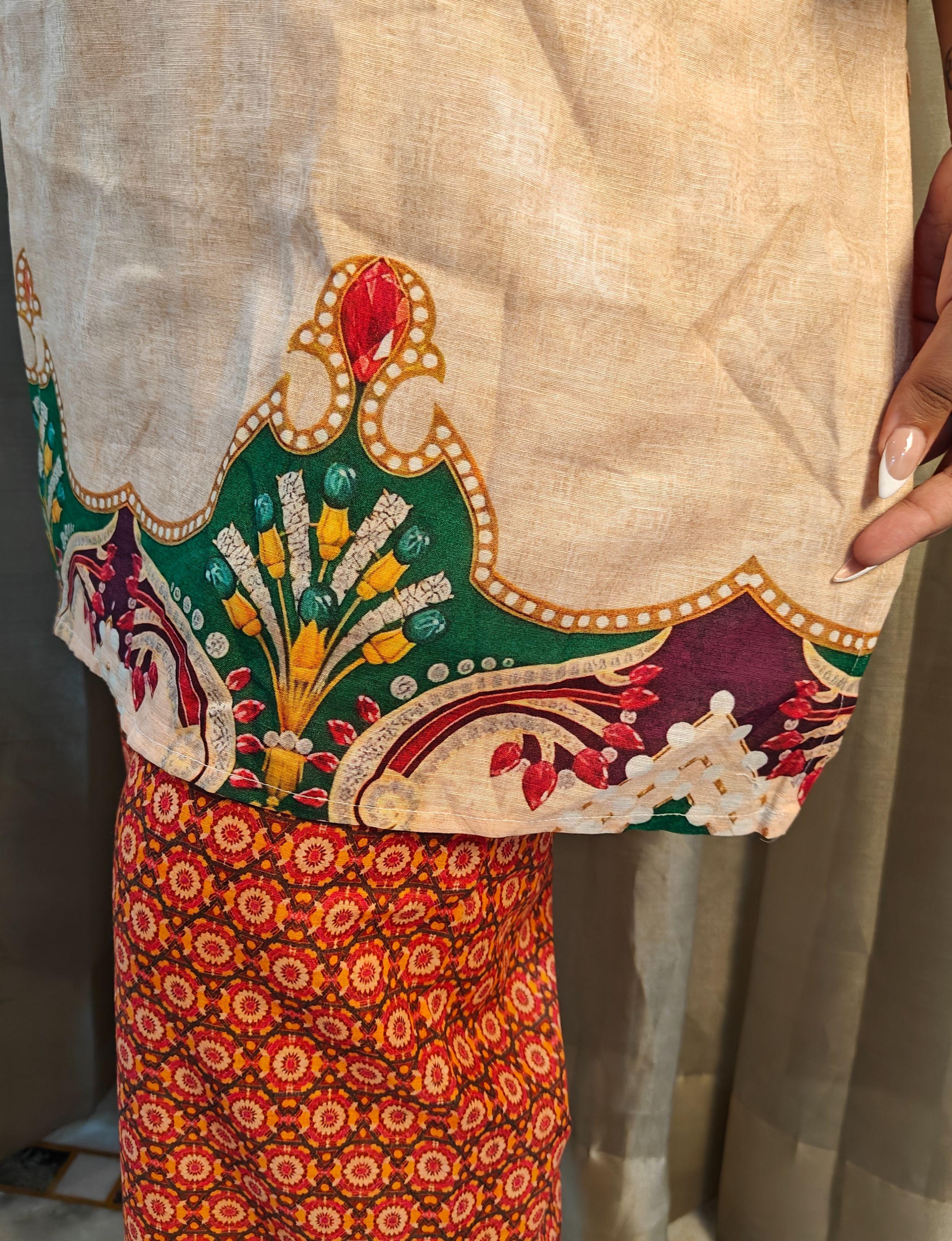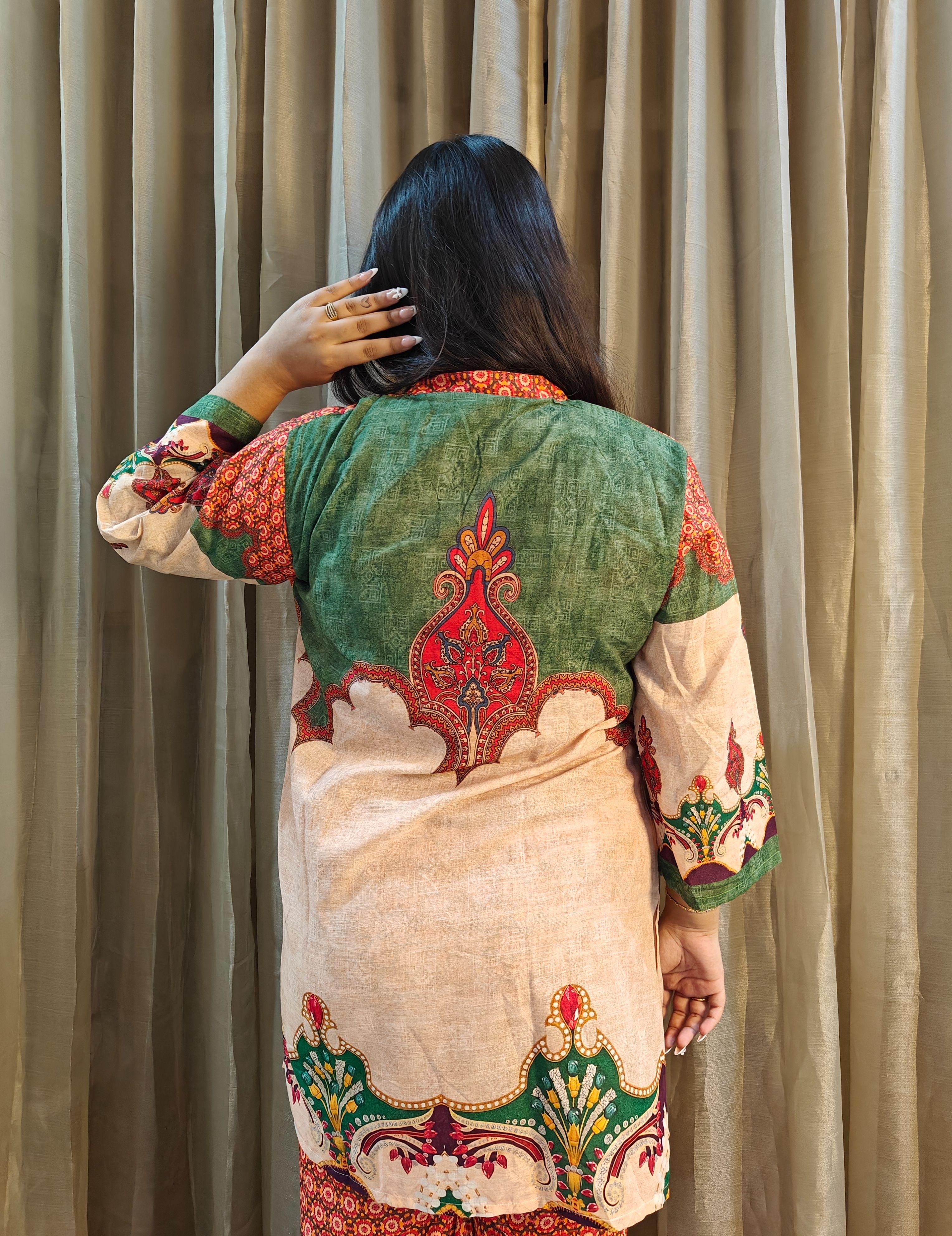 Size and Fit: Loose straight fit Kurti with Wide leg pants