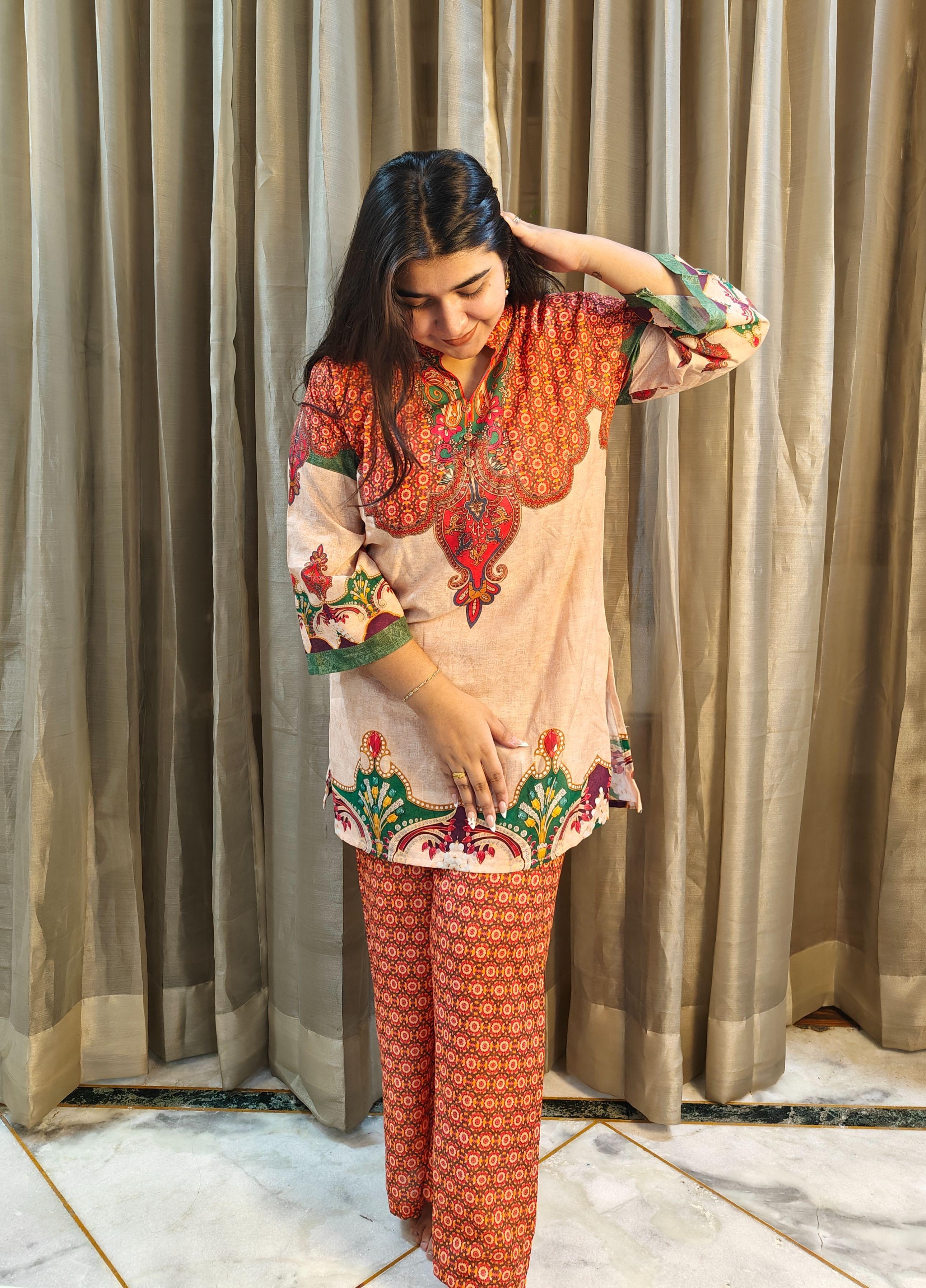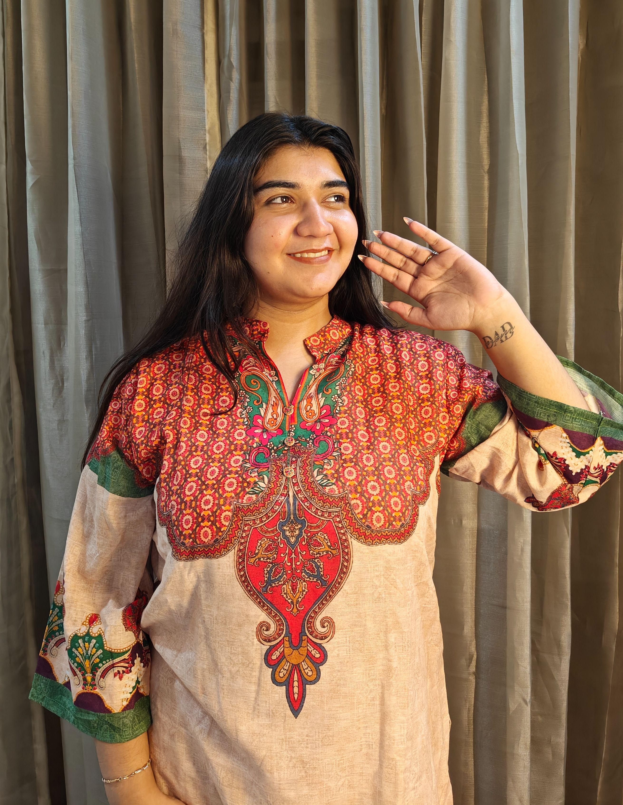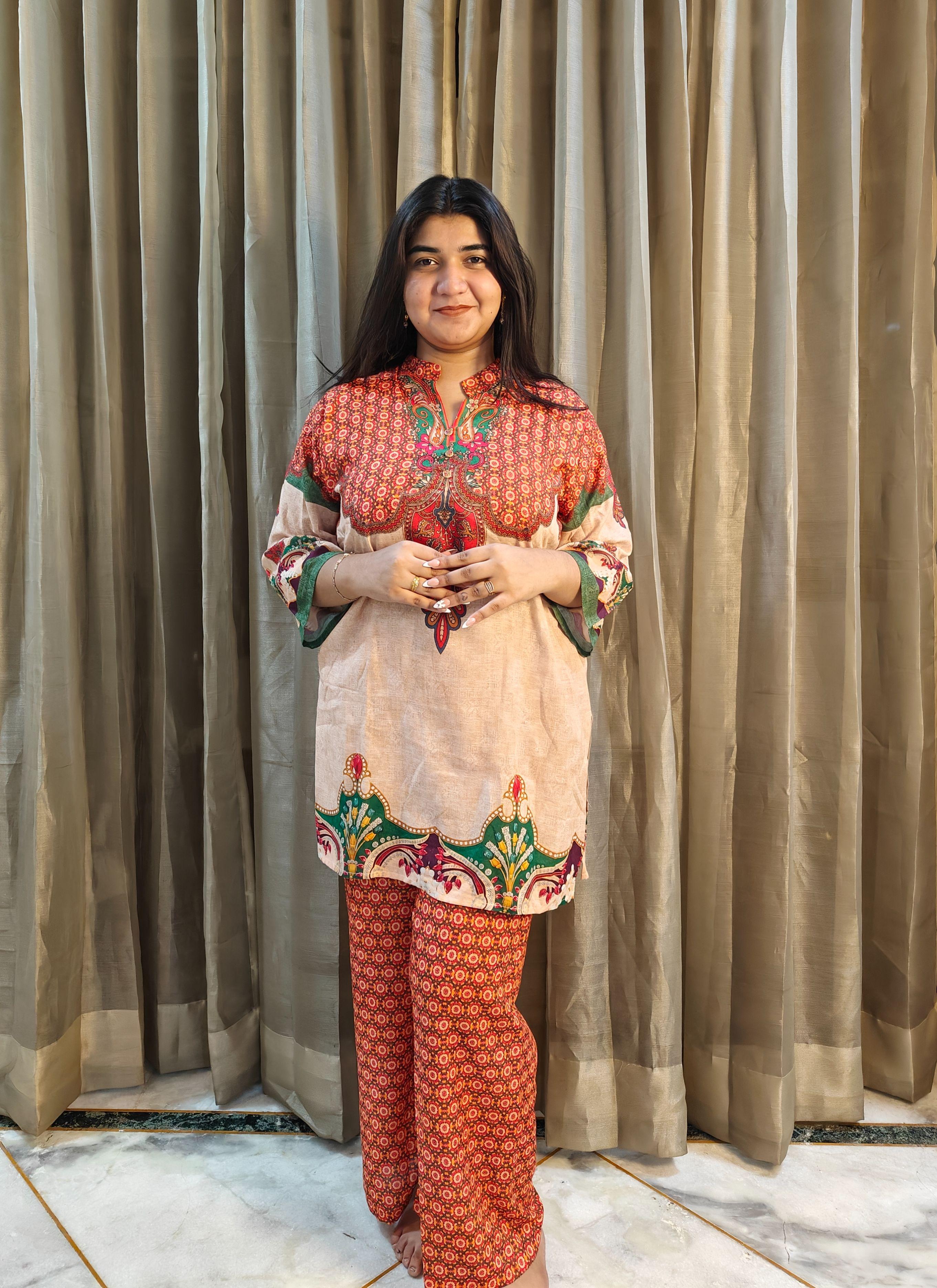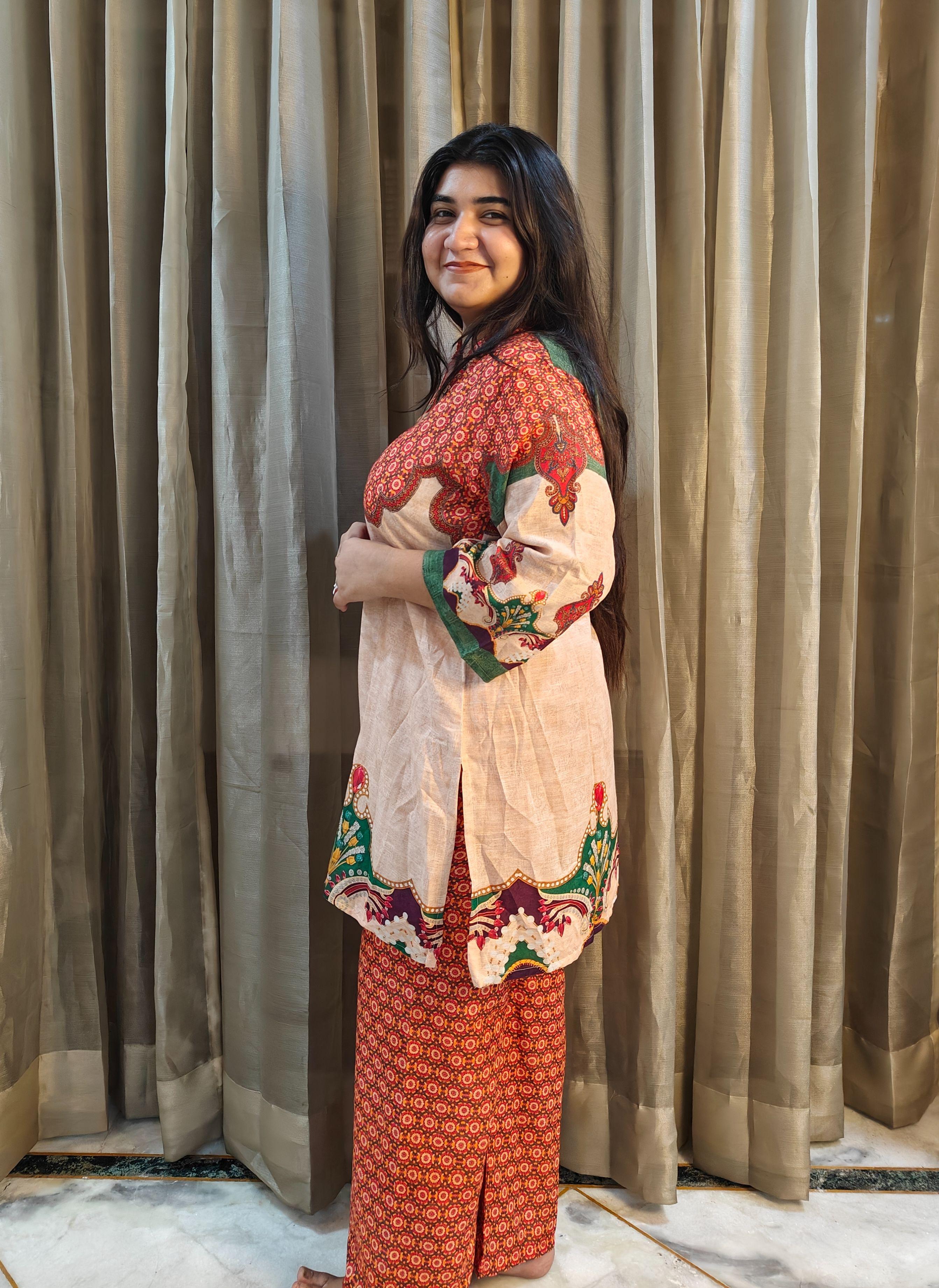 Size and Fit: Loose straight fit Kurti with Wide leg pants